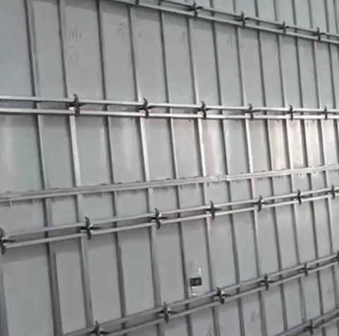 剪力墻的雙向五道對(duì)拉雙排圓鋼管改為鍍鋅扁鋼管,元寶扣與螺母不變。